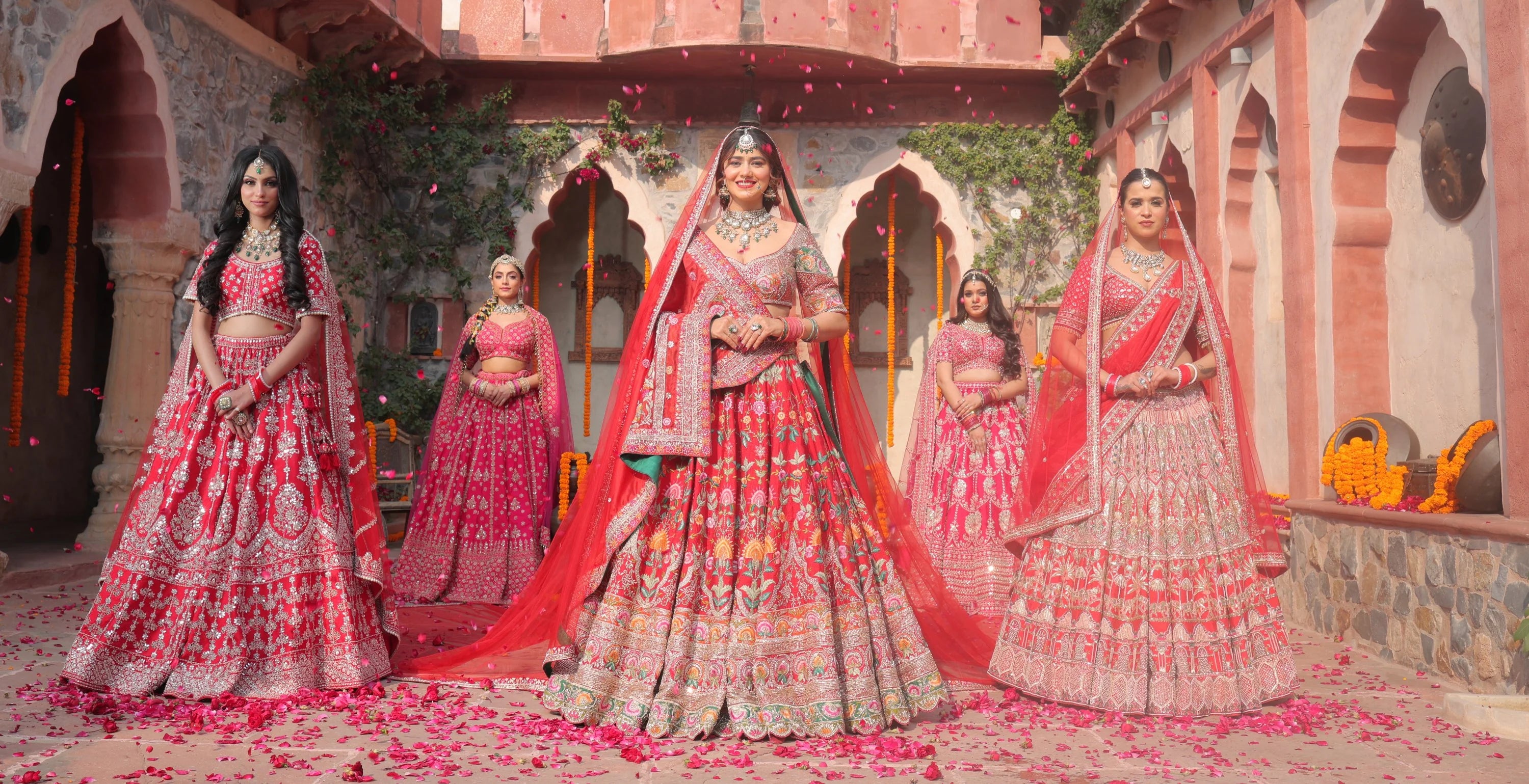 lehenga, an exquisite traditional Indian skirt, blouse, and scarf ensemble, embodies grace and cultural richness